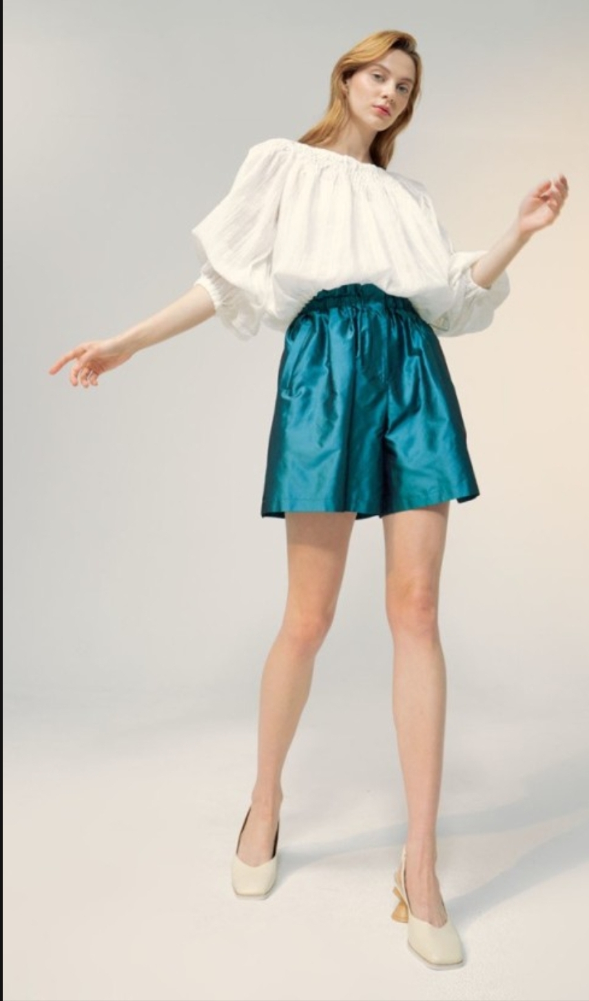 한섬 랑방 린넨블렌드 벌룬슬리브 밴딩탑 택포30(정상125)